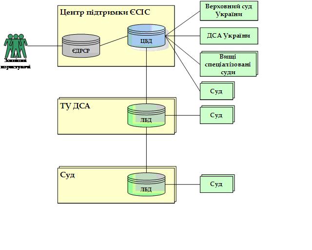 - Підсистема реплікації. Оперативна передача справ, судових рішень, що отримали офіційний статус, та їх реквізитів до ЦБД та ЛБД судів або ТУ ДСА, до яких надіслано справу;