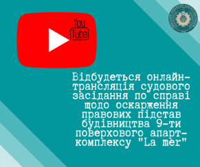 Трансляція судового засідання буде здійснюватися на YouТube каналі вебпорталу «Судова влада України» за посиланням: https://bit.ly/3LwxKRA